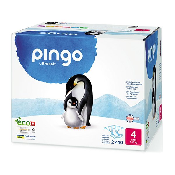 PINGO COUCHES ÉCOLOGIQUES JETABLES MAXI JUMBO TAILLE 4 (7-18KG) 2X40 COUCHES