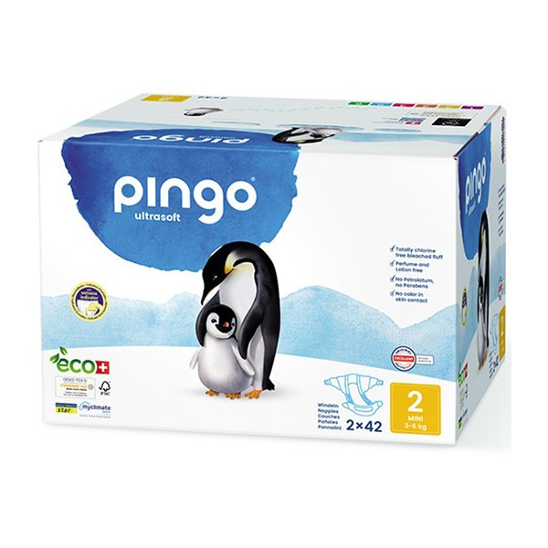 PINGO COUCHES ÉCOLOGIQUES JETABLES MINI JUMBO TAILLE 2 (3-6KG) 2X42 COUCHES